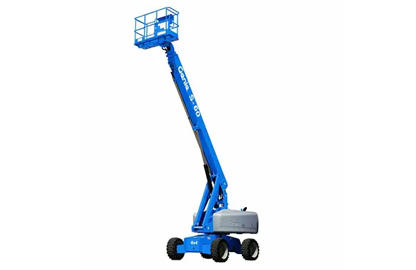 Plataforma elevadora móvil de personal (PEMP) para alcanzar alturas elevadas y grandes distancias horizontales.